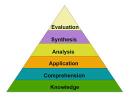 Bloom’s Taxonomy can help clarify and solve the issue and confusion of type three of the above. Bloom’s Taxonomy, originally developed by Benjamin Bloom in 1956, has six levels, as illustrated in Figure 1.